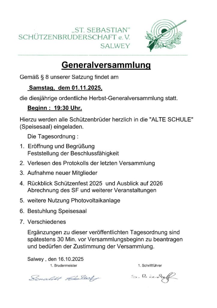 Die Versammlung wird aufgrund einer Terminüberschneidung am 15.11., auf den 01.11. vorverlegt.